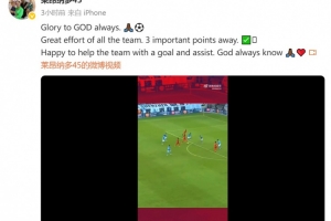 赛后,莱昂纳多更新社媒庆祝,他同时配文:荣耀归于上帝,全队付出了巨大努力,客场拿到重要的3分,很高兴用进球和助攻帮助球队,上帝总是知道。